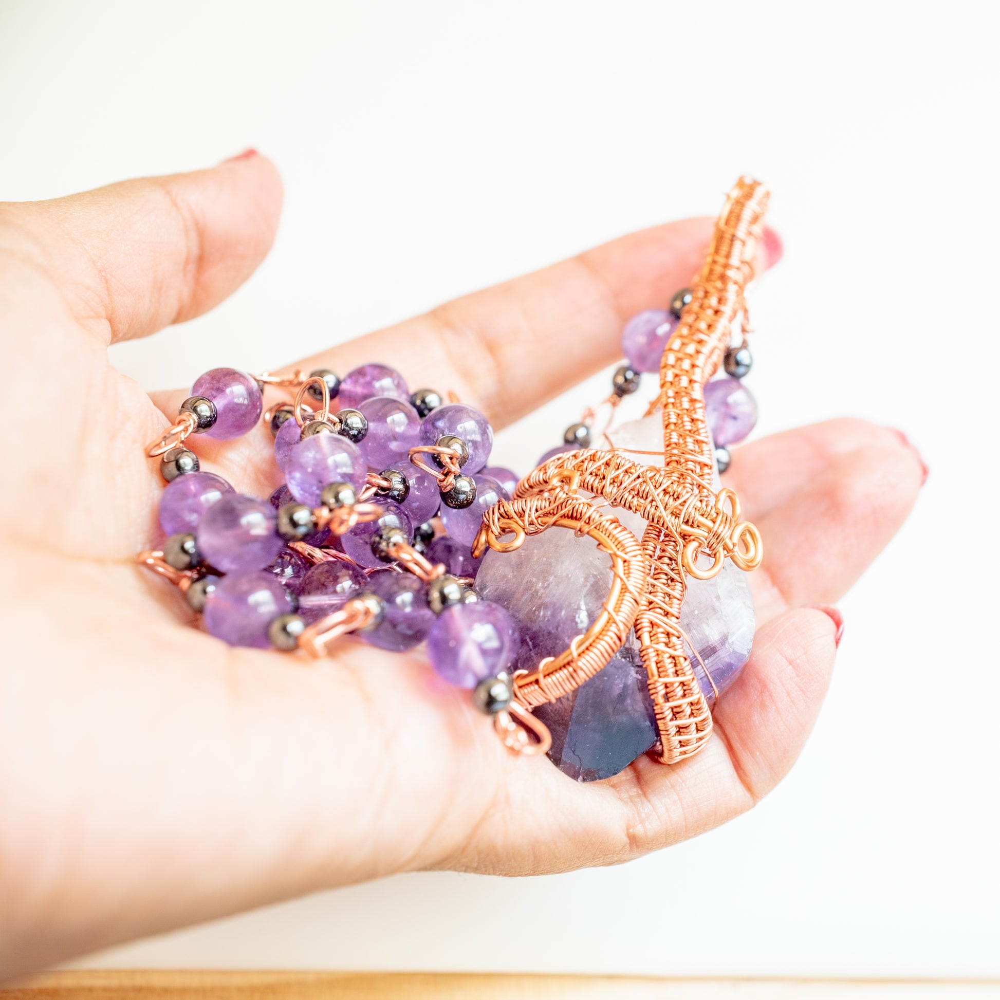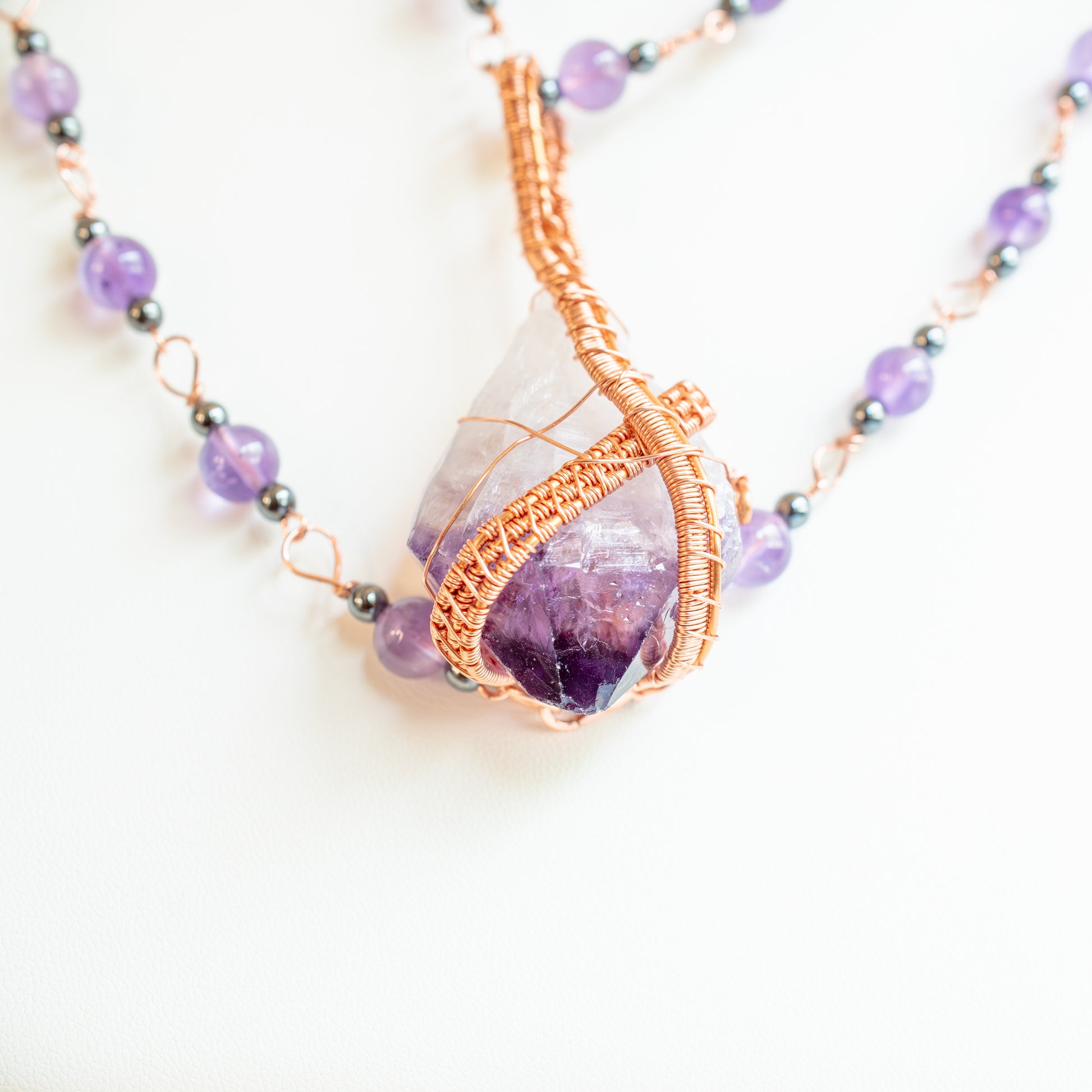 Amethyst Crystal Necklace – Hand-Wrapped in Copper Wire