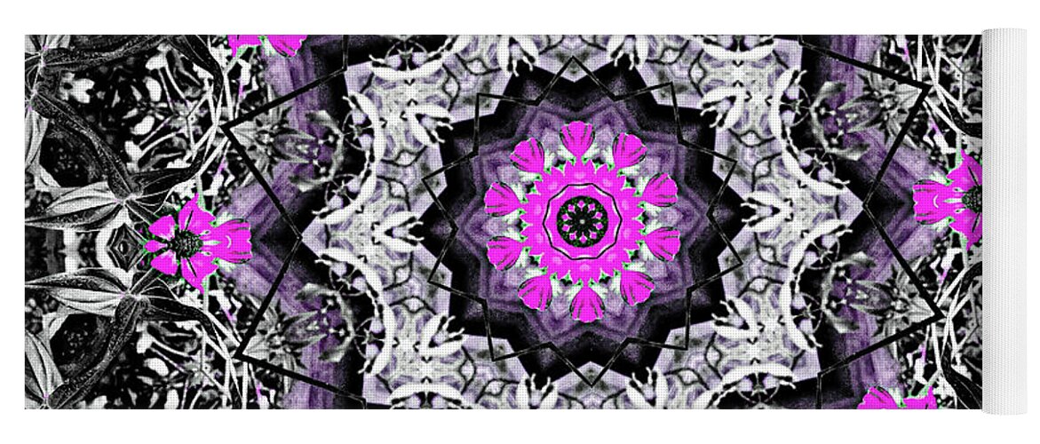 Black, white and Magenta Flowers Mandala - Yoga Mat