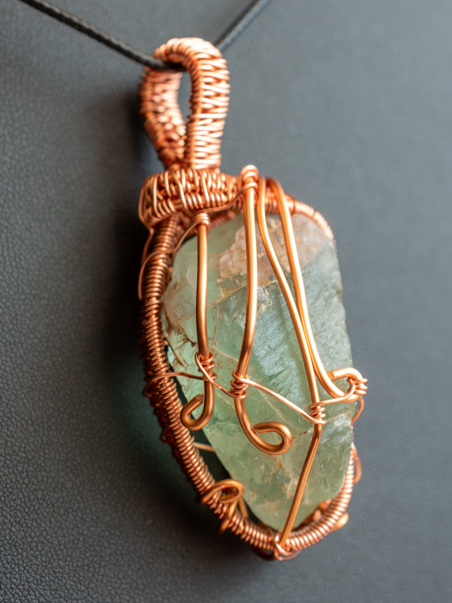 Embrace the calming, powerful energy of Fluorite 🌈—a sacred stone cherished for centuries as a "Genius Stone" for its ability to clear the mind, enhance concentration, and absorb negative energy 🧠💫. Hand-woven in pure copper 🧶—a powerful conductor of energy—this pendant radiates a sense of peace and mental order, bringing a clear head to your daily life.