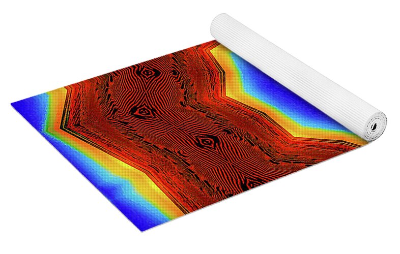 Our premium yoga mats are 24" wide x 72" tall x 0.25" thick and made from natural rubber with a blended microfiber top surface. The top of the mat has the image printed on it, and the back is solid black with textured dimples for better floor grip.