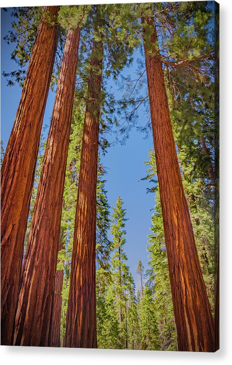 Perfect angle of Pines and Sequoias in a Forest - Acrylic Print