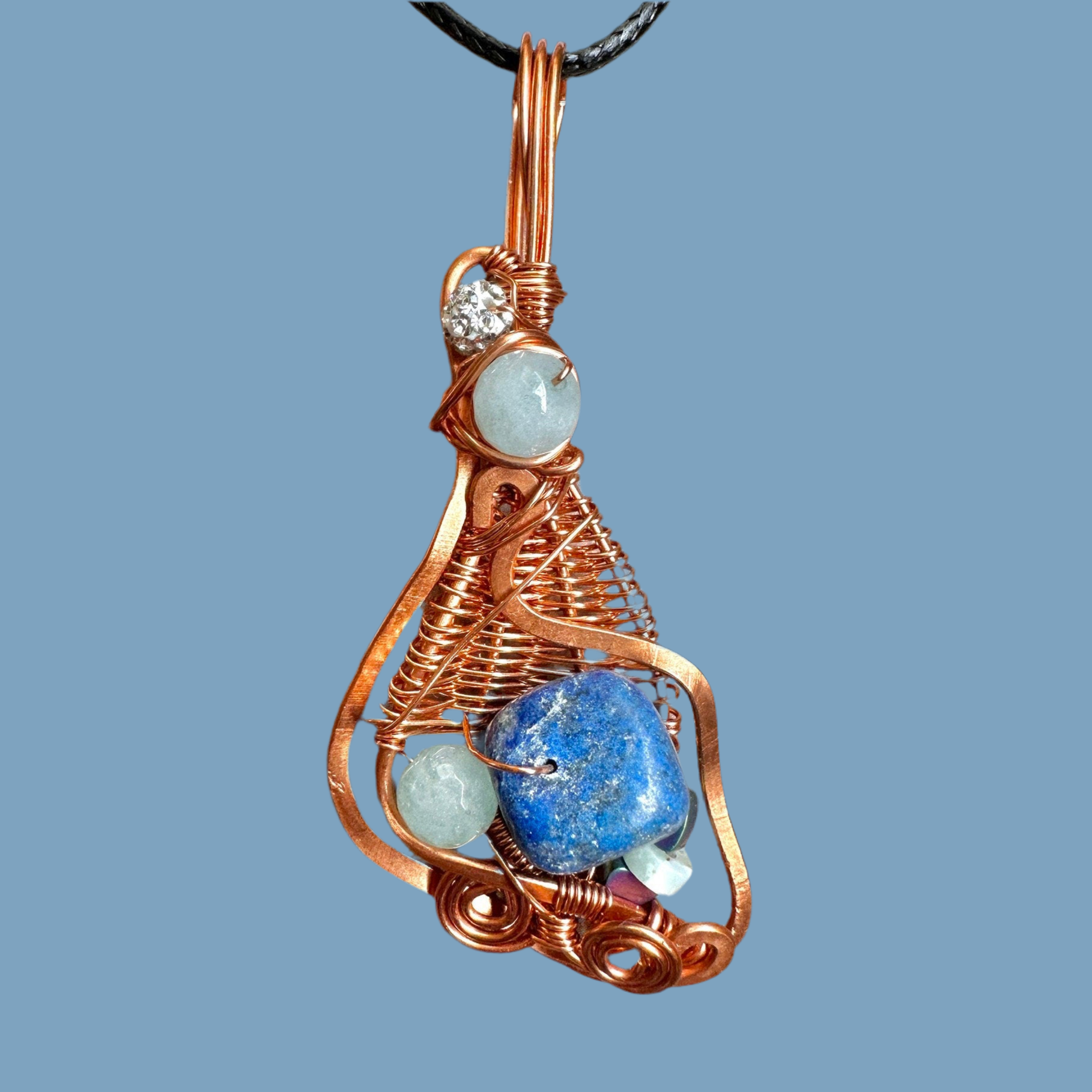 Sodalite and Copper Wire Wrapped Amulet For Balance Protection against negativity