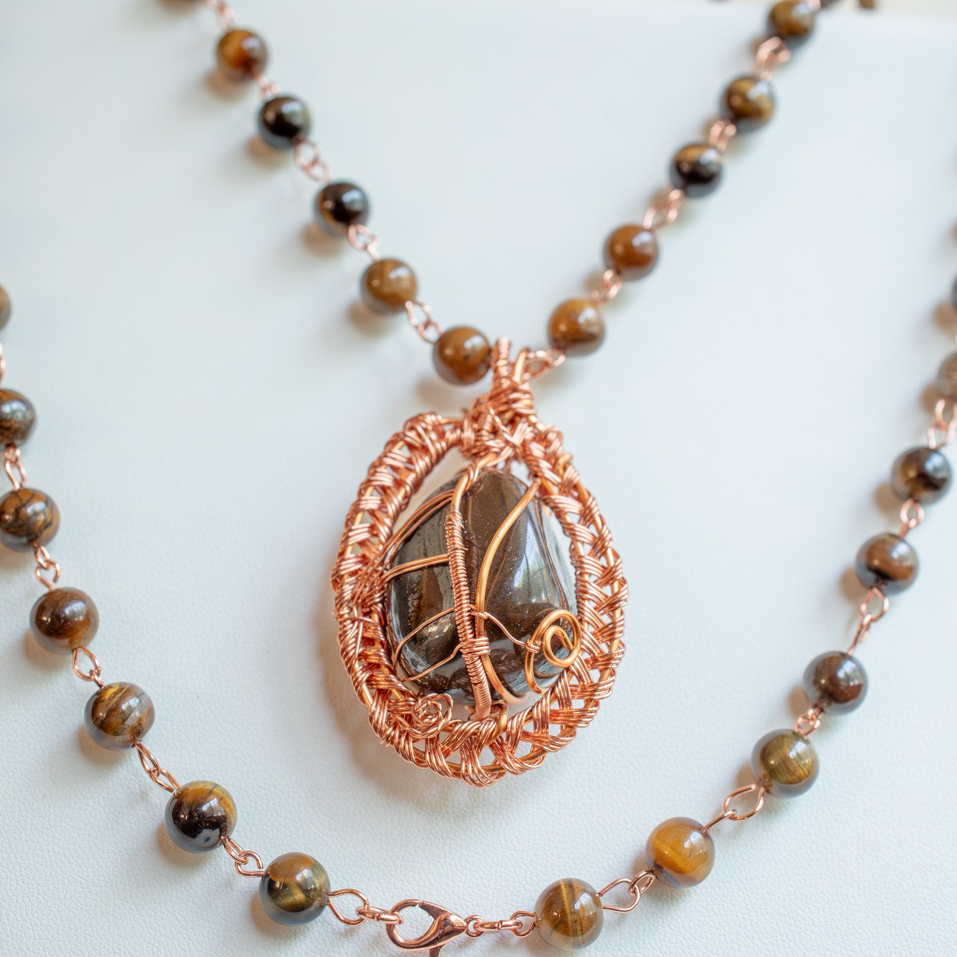 Embrace the grounding energy of Tiger’s Eye 🌍—a sacred stone cherished for centuries as a talisman of protection, clarity, and courage 🛡️💫. Hand-wrapped in pure copper 🧶—a powerful conductor of energy—this pendant radiates strength and balance, suspended on a beautifully earthy beaded chain 🌿.
